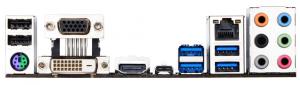 Zezadu má počítač konektory 5x USB 3.0 (4x typ A, 1x typ C), 2x, USB 2.0, 1x PS/2, 1x Gbit síť, Jack výstupy pro až 7.1 reproduktory, výstupy integrované grafiky (HDMI, DVI, D-SUB).