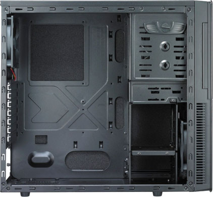 Skříň je speciálně vybavena pro snížení hluku. Dodává se se 120mm předním nasávacím a zadním vyfukovacím ventilátorem. Na čelním panelu je vyveden jeden konektor USB 2.0, jeden USB3.0, audio konektory (sluchátka a mikrofon) a čtečka SD karet.