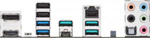 Zezadu má počítač konektory 4x USB 3.1 (10Gbps, 1x typC, 3x typ A), 2x USB 3.0 (5Gbps), 2x USB 2.0, 1x 2,5Gbit síť, Jack výstupy pro až 7.1 reproduktory, optický výstup a jack výstupy integrované grafiky (HDMI, DisplayPort).